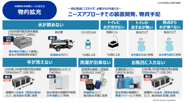 災害用とされている装備を平時から運用・整備し、いざという時には必要な地域へ切り替えて展開することで、断水時にも水を届けられる社会の実現を目指しています。