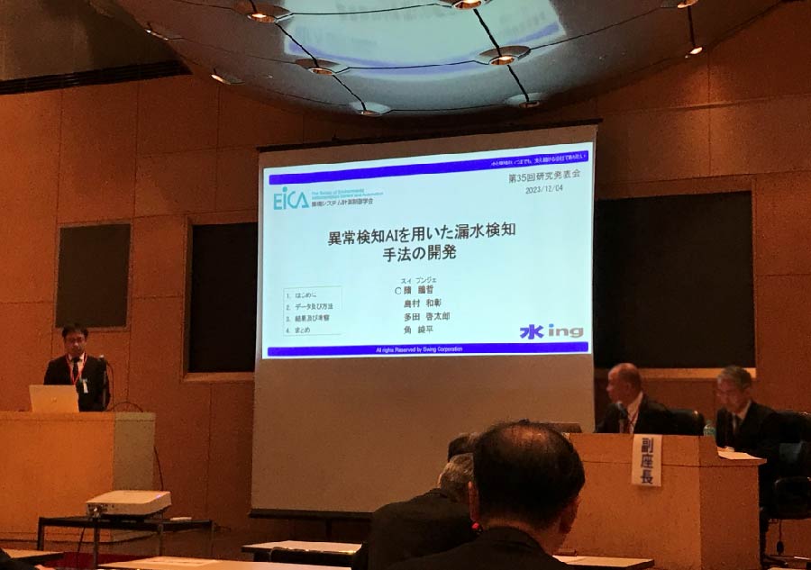水ing株式会社(社長:大汐 信光、本社:東京都港区)が発表した論文「異常検知AIを用いた漏水検知手法の開発」が、環境システム計測制御学会(以下、EICA)主催の研究発表会において、奨励賞※を受賞したことをお知らせします。