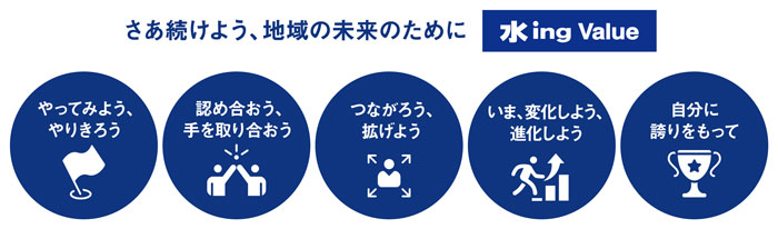 本項目は、当社が長期的に目指す社会的価値と事業の方向性を明確に定めた重要課題であり、今後の当社グループの経営と事業運営を導く「羅針盤」として位置づけるものです。2026年度に新たな仲間を迎え、全社員がこのマテリアリティに向けてベクトルを合わせて取り組んでいきます。共通の価値観である「水 ing バリュー」を一人ひとりが体現しながら、経営計画の着実な達成、さらにはその先にある「水 ing 流 街づくり」の実現に向けて、組織一丸となって前進して参ります。
