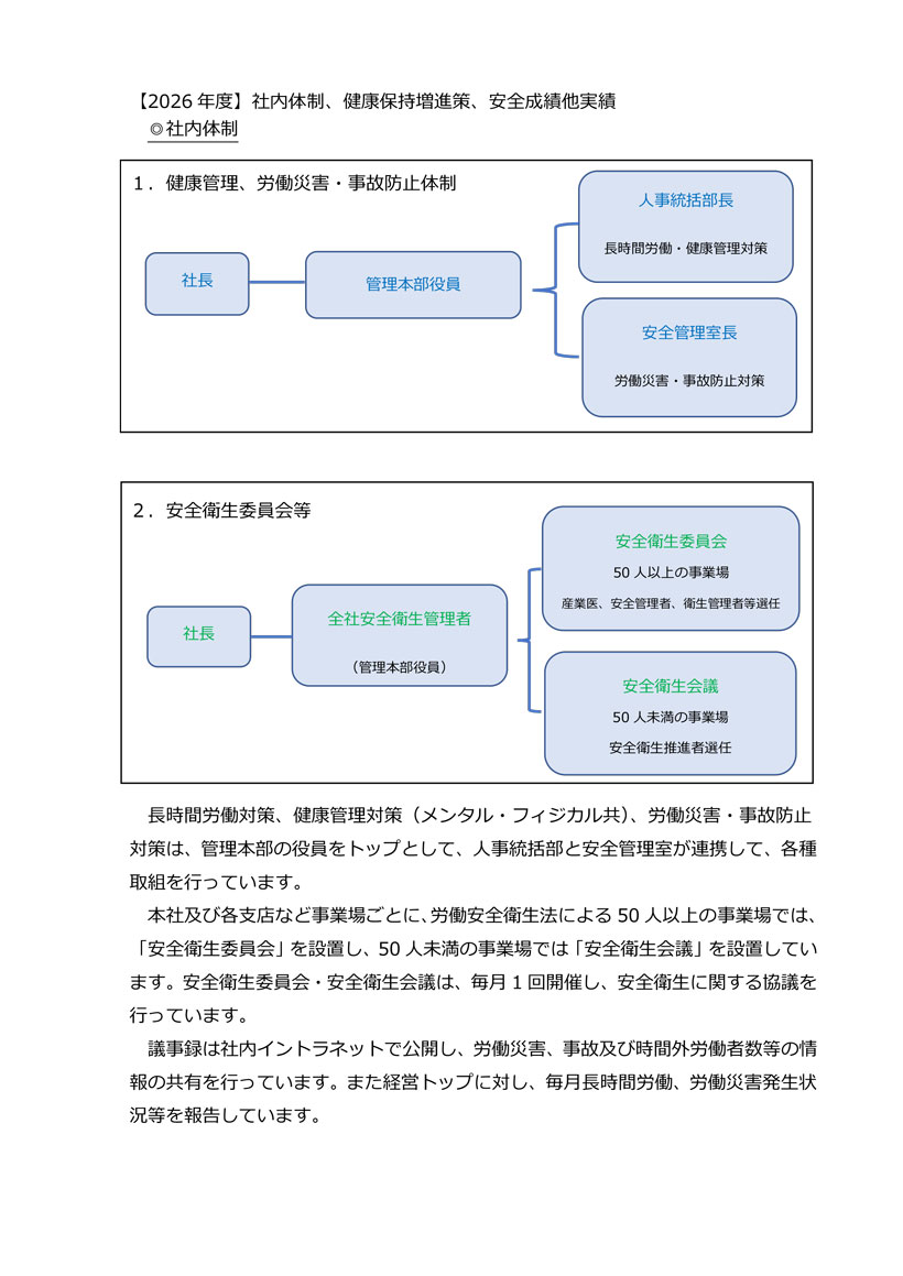 水ing グループ企業理念と行動基準、安全衛生健康管理方針に基づき、「安全・衛生・健康が何ものにも勝る」を基本理念として、各社員の健康はもとより、組織全体が健康であることを目指し、社員と組織全体が能力を十分に発揮できる心身共にいきいきと働ける職場環境や風土づくりを推進します。