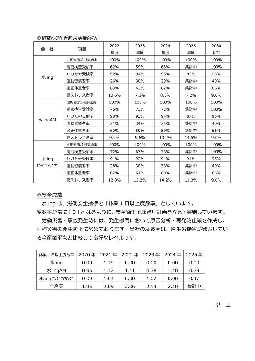 水ing グループ健康経営宣言